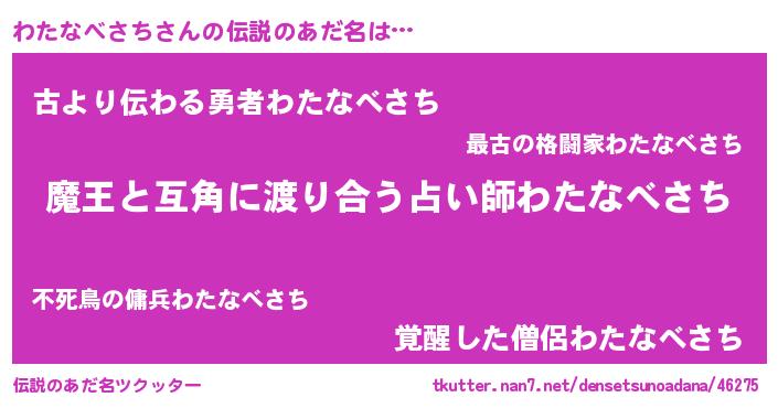 | ヒーロー風カッコイイあだ名 | 『愛の使者わたなべさち』『炎刃騎士ワタ』 |