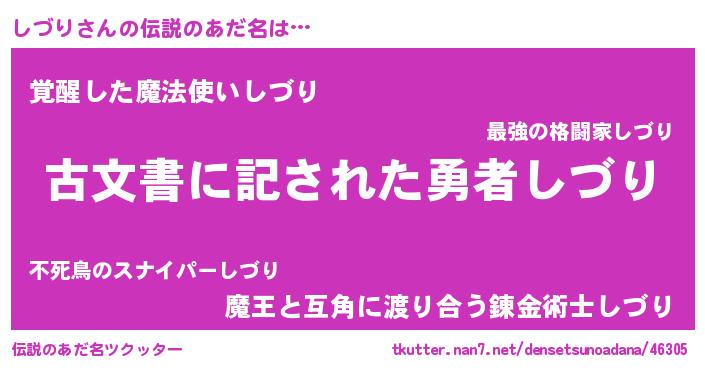 | ヒーロー風カッコイイあだ名 | 『ネオシヅリ』『暗黒騎士シヅ』 |