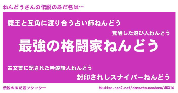 | 意味不明あだ名 | 『ねんどうフォーエバー』 |