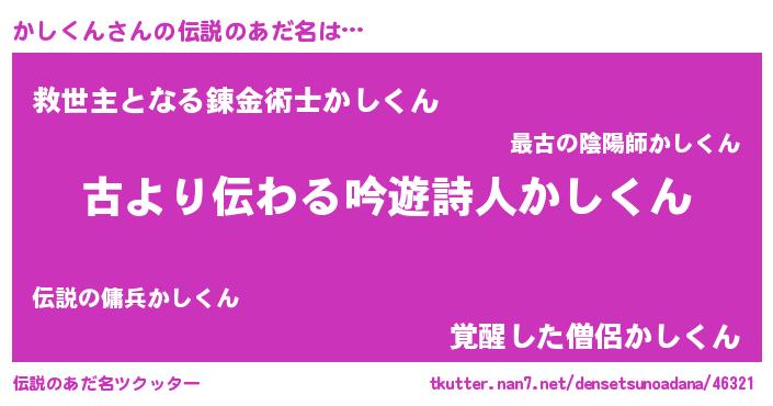 | ヒーロー風カッコイイあだ名 | 『ネオカシクン』『天空の使者かしくん』 |