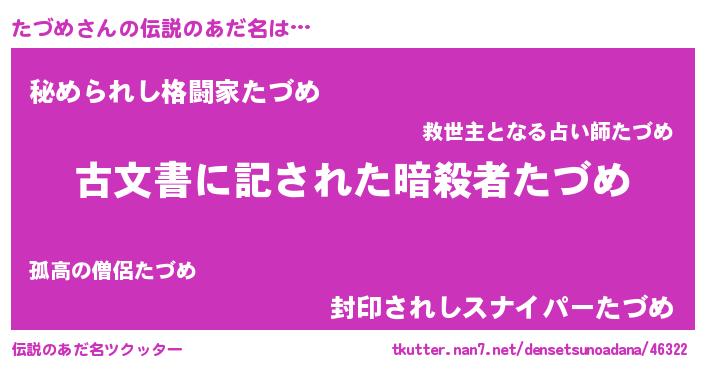 | ファンタジー風あだ名 | 『タヅディッシュ』『エターナルタヅメー』 |