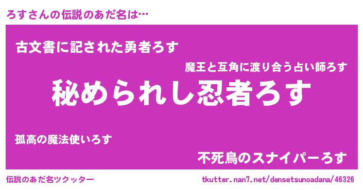 | ヒーロー風カッコイイあだ名 | 『ウルトラろすマン』『ネオロス』 |