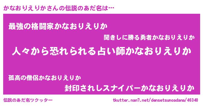 | 意味不明あだ名 | 『眠気覚ましガムかなおりえりか味』 |