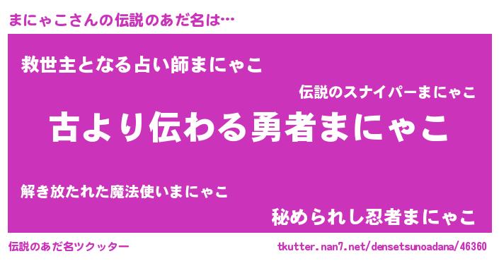 | 女子向けラノベタイトル風あだ名 | 『まにゃこの契約王妃』『闇のまにゃこ』 |