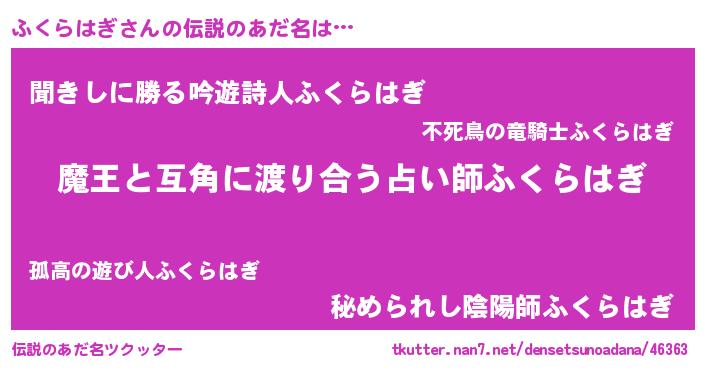 | ヒーロー風カッコイイあだ名 | 『サイバー戦士フクラハギ』 |