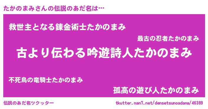 | 男性向けラノベタイトル風あだ名 | 『たかのまみという概念が存在しない退屈な世界 』 |