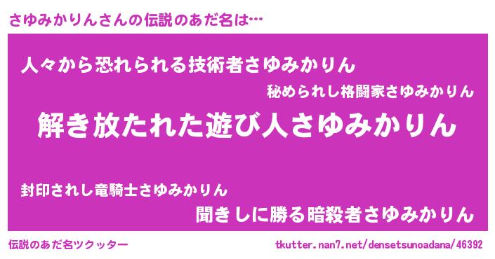 | 男性向けラノベタイトル風あだ名 | 『ダンジョンにさゆみかりんを求めるのは間違っているだろうか』 |