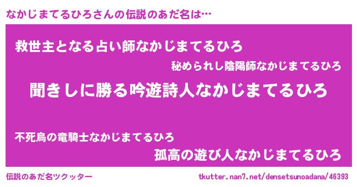 | 女子向けラノベタイトル風あだ名 | 『異世界で失敗しない100のなかじまてるひろ』 |