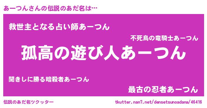 | 男性向けラノベタイトル風あだ名 | 『ダンジョンにあーつんを求めるのは間違っているだろうか』 |