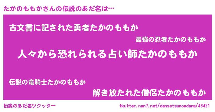 | ヘコむあだ名 | 『たかのももか(笑)』『たかぷりん』 |
