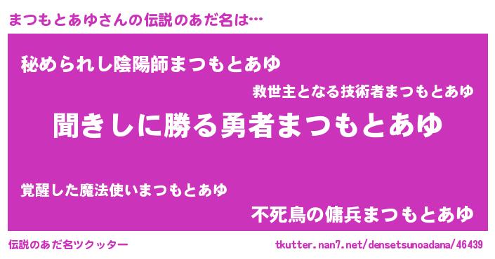 | 意味不明あだ名 | 『永久保存まつもとあゆ』 |