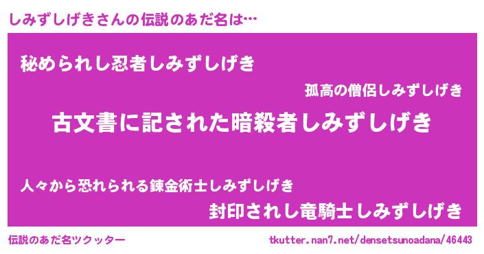 | ヒーロー風カッコイイあだ名 | 『ネオシミズシゲキ』『仮面シミダー』 |