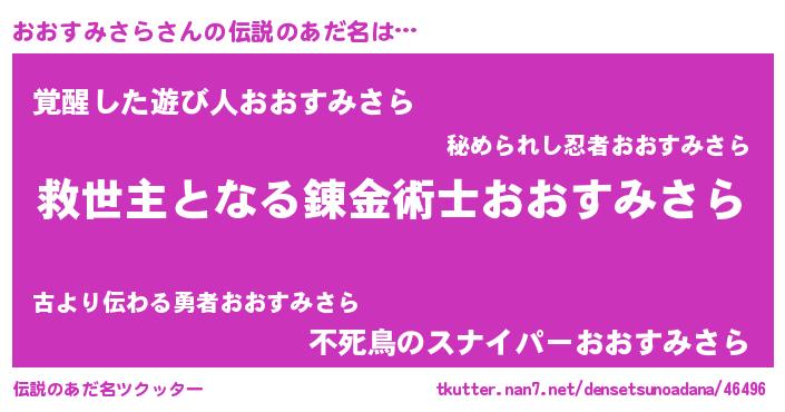 | 意味不明あだ名 | 『眠気覚ましガムおおすみさら味』 |