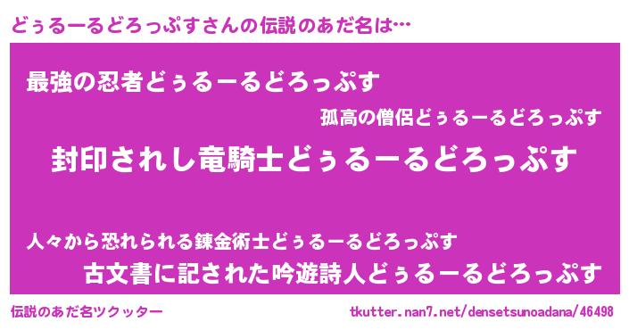 | 胡散臭い通販商品みたいなあだ名 | 『億万長者になれるブレスレット…その名も「どぅるーるどろっぷす」』 |