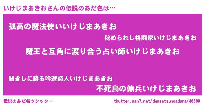 | 男性向けラノベタイトル風あだ名 | 『転生したらいけじまあきおだった件』 |