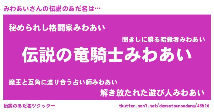 | 女子向けラノベタイトル風あだ名 | 『みわあいが死なない童話 林檎のみわあいの診療簿』 |