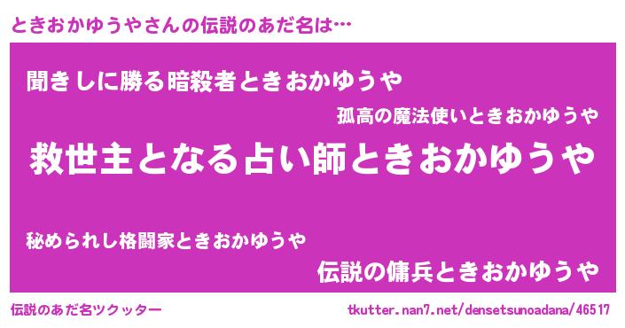 | 意味不明あだ名 | 『自称ときおかゆうや』 |