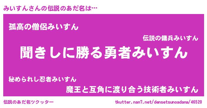 | 男性向けラノベタイトル風あだ名 | 『みいすんという概念が存在しない退屈な世界 』 |