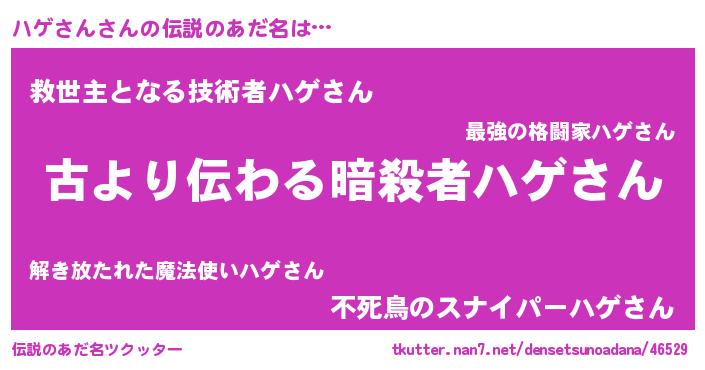 | 胡散臭い通販商品みたいなあだ名 | 『来世でも幸せになれる健康食品…その名も「ハゲさん」』 |