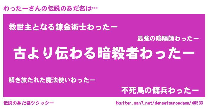 | 意味不明あだ名 | 『自称わったー』『永久保存わったー』 |