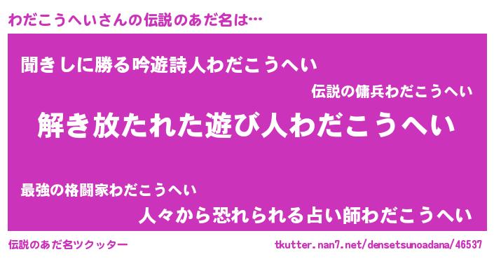 | 意味不明あだ名 | 『とにかく怪しいわだこうへい』 |