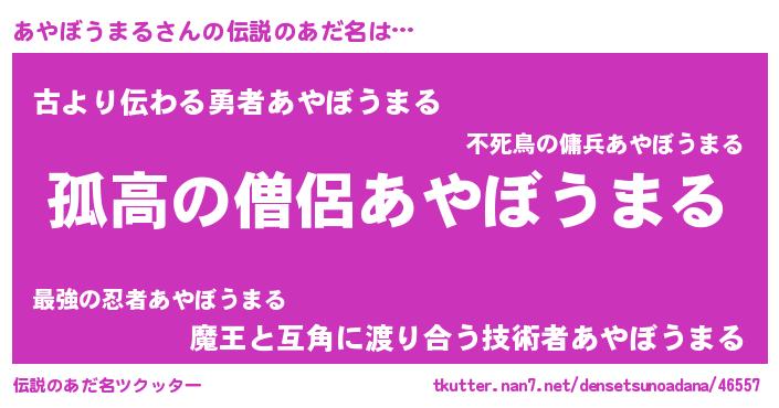 | 女子向けラノベタイトル風あだ名 | 『あやぼうまるなんてお断りですっ。』 |