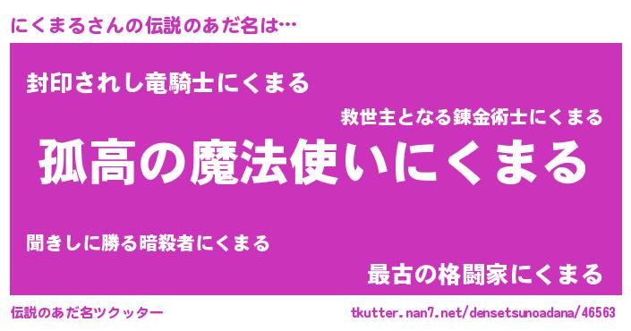 | 女子向けラノベタイトル風あだ名 | 『にくまるは平凡を望む』『闇のにくまる』 |