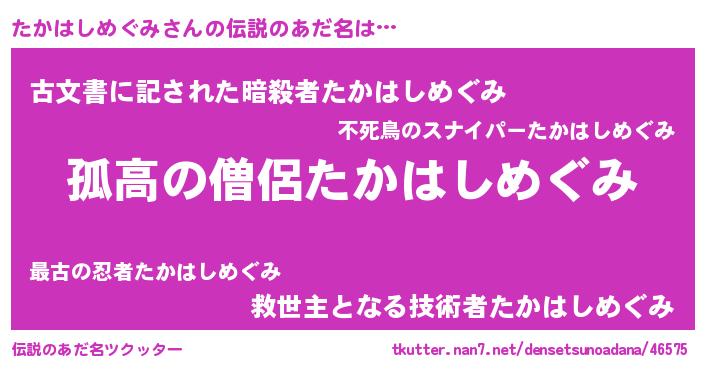 | ポケモン風あだ名 | 『ヒタカハシメグミ』『ゼニタカ』 |
