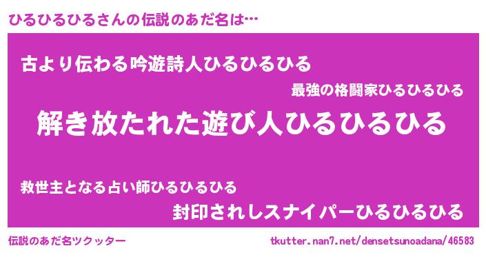 | 意味不明あだ名 | 『とにかく怪しいひるひるひる』 |