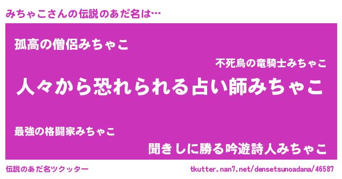 | ヒーロー風カッコイイあだ名 | 『友情の使者みちゃこ』『黄金騎士ミチ』 |
