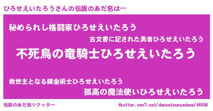 | 女子向けラノベタイトル風あだ名 | 『闇のひろせえいたろう』 |