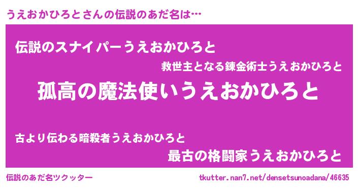 | ポケモン風あだ名 | 『ウーエイ』『ヒウエオカヒロト』 |