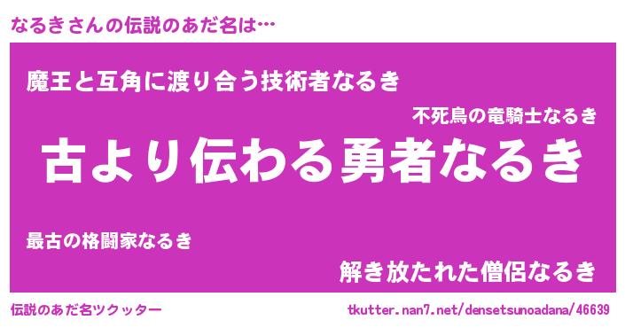 | 意味不明あだ名 | 『永久保存なるき』『自称なるき』 |