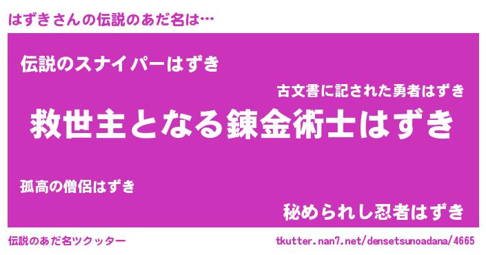 | 胡散臭い通販商品みたいなあだ名 | 『あなたにだけ特別に提供する世界で10本だけ現存している希少なブランデー…その名も「はずき」』 |
