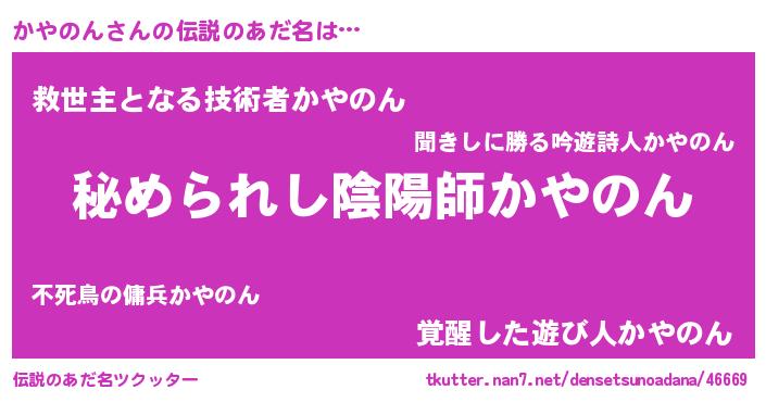 | 男性向けラノベタイトル風あだ名 | 『やはりかやのんの青春ラブコメはまちがっている 』 |
