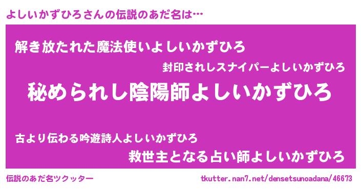 | 意味不明あだ名 | 『住所不定無職よしいかずひろ(95歳)』 |