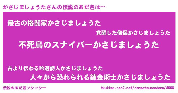 | 胡散臭い通販商品みたいなあだ名 | 『モテモテ間違いなし霊験あらたかなお札…その名も「かさじましょうた」』 |