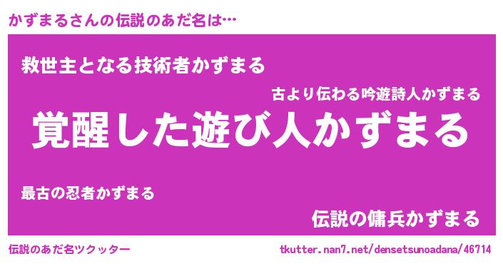 | ヒーロー風カッコイイあだ名 | 『炎刃騎士カズ』『慈愛の使者かずまる』 |