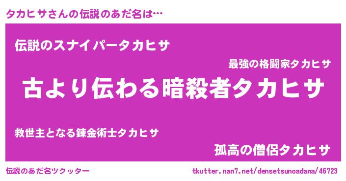 | ヒーロー風カッコイイあだ名 | 『サイバー戦士タカヒサ』『ネオタカヒサ』 |