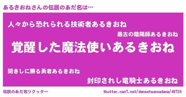 | 男性向けラノベタイトル風あだ名 | 『この素晴らしい世界にあるきおねを!』 |