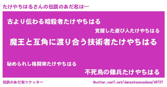| 意味不明あだ名 | 『自称たけやちはる』 |