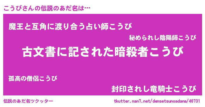 | ヘコむあだ名 | 『こうび(笑)』『こうにゅー』 |
