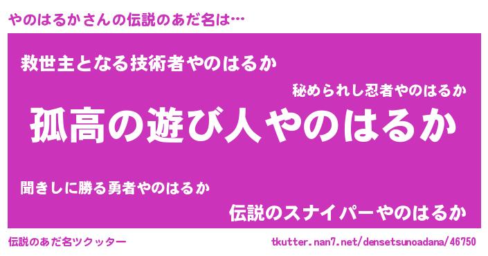 | 女子向けラノベタイトル風あだ名 | 『やのはるかは平凡を望む』 |