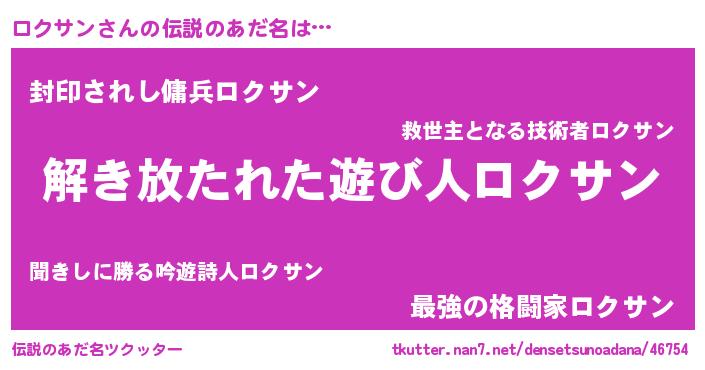 | ヒーロー風カッコイイあだ名 | 『幻影騎士ロク』『スーパーロクサン』 |