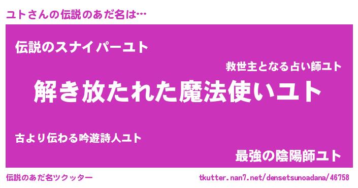 | ヒーロー風カッコイイあだ名 | 『幻影騎士ユト』『スーパーユト』 |