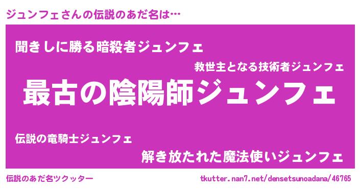 | ファンタジー風あだ名 | 『エターナルジュンフェー』『ゼジュトゥ』 |