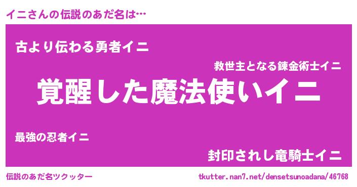 | ヘコむあだ名 | 『イニを』『イニ(苦笑)』『イニにー』 |