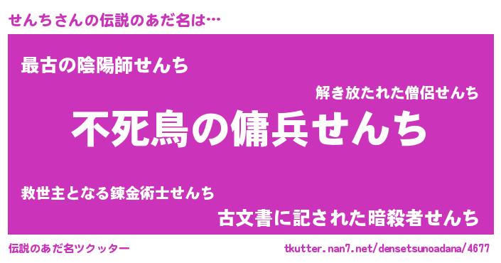 | ヒーロー風カッコイイあだ名 | 『スーパーセンチ』『ウルトラせんちマン』 |