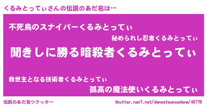 | 意味不明あだ名 | 『住所不定無職くるみとってぃ(14歳)』 |