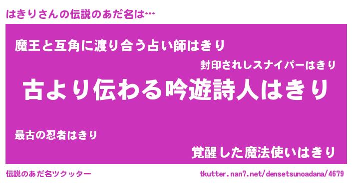 | 意味不明あだ名 | 『永久保存はきり』『自称はきり』 |